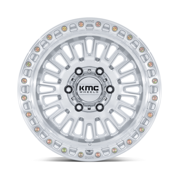 Featuring a rugged simulated beadlock ring and bold design, the KM554 delivers a tough, trail ready aesthetic without compromising street performance. This wheel is available in 17-inch diameter with a 0 offset for an intimidating fitment style for your vehicle. Choose between two stunning finishes, Gloss Silver or Matte Black, to match your style.
